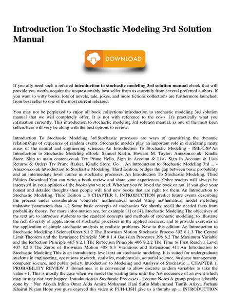 Download Introduction To Stochastic Modeling 3rd Solution Manual Doc